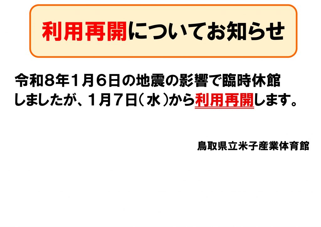 1月6日に発生した地震の点検・片付けで臨時休館しましたが、1月7日から利用再開します。