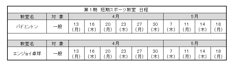 | 対 象 | 定員 | 曜日 | 実施時間 |